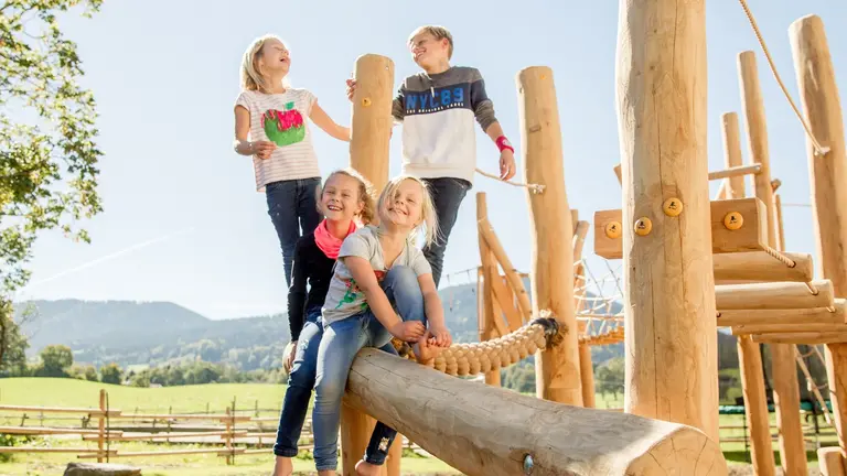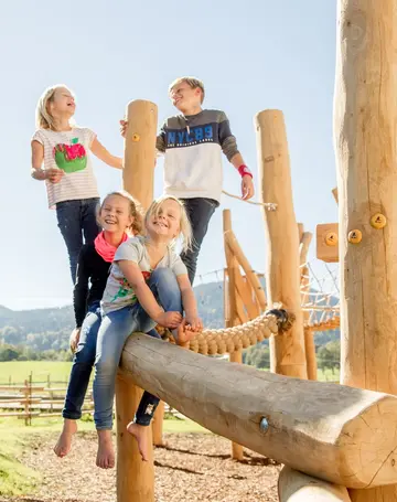 Ein abwechslungsreicher Spielplatz trägt entscheidend dazu bei, dass der Familienurlaub zum Erfolg wird. Typische Ausstattungen auf kinderfreundlichen Erlebnisbauernhöfen sind: