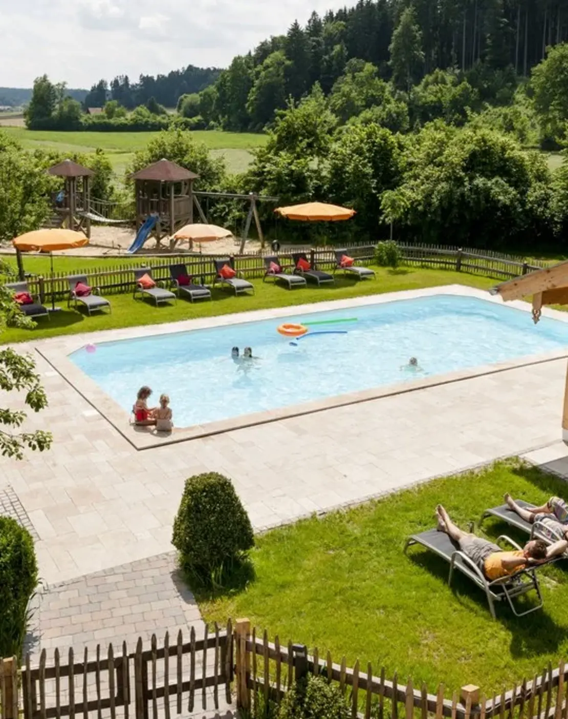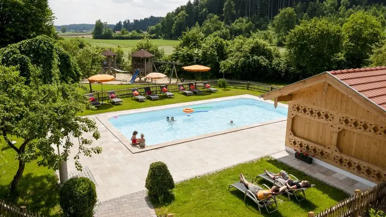 Urlaubsland Bayern – Badeland Bayern. Das Bundesland bietet eine riesige Vielfalt an Schwimmbädern, Erlebnisbädern und Thermen und damit Spiel, Spaß und natürlich auch Erholung für alle Familienmitglieder. Action auf der rasanten Turbo-Wasserrutsche, Südsee-Stimmung unter Palmen, tief durchatmen im Dampfbad, prickelnde Massagedüsen oder Sprudelliegen. All das und vieles mehr erwartet Sie beim Bauernhofurlaub mit Schwimmbad. Und natürlich gibt es in jeder Einrichtung passende Angebote für die kleinsten Wasserratten, z.B. mit Wasserkanone, Kinderrutsche, Springbrunnen, Piraten-Erlebnisschiff oder einer Wasserburg.