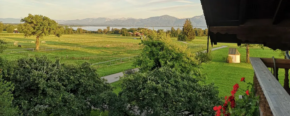 Grandios ist nicht nur der Blick vom Moier-Hof auf die Gipfelkette der Chiemgauer Alpen mit seiner Prominenten, der Kampenwand. In der ruhigen Wohlfühloase mit Herz, nur 500 Meter vom Chiemsee entfernt, finden Gäste ab 14 Jahren das große Urlaubsglück. Schon während der Tag mit einem leckeren Frühstück auf der sonnigen Terrasse beginnt, schweift der Blick vom Glitzern des Wassers im Morgenlicht über das wundervolle Panorama. Auch schlechtes Wetter tut dem Genuss keinen Abbruch: „Ein Kachelofen und gemütliche Eckbänke machen es in der traditionellen Bauernstube so richtig behaglich“, sagt Gastgeberin Isabell.