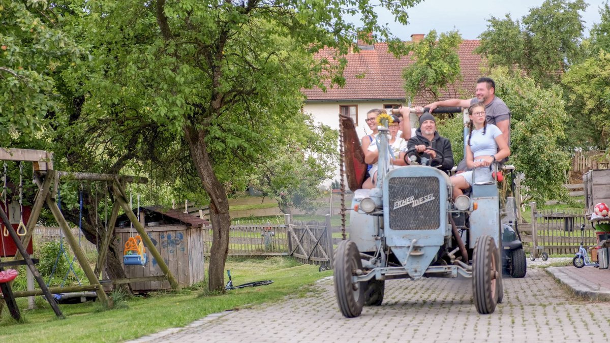 „Unser Hof ist ein sogenannter Itakerhof“, erzählt Berni. Als 1910/11 die Bahnstrecke zwischen Mühldorf und Freilassing gebaut wurde, wohnten italienische Gastarbeiter im Brunnerhof. Und nach Feierabend verpassten sie dem Hof sein außergewöhnliches Aussehen mit Stuck, Fachwerk und Malereien. Gut 110 Jahre später renoviert Berni seinen besonderen Hof mit viel Liebe und Herzblut. Und freut sich sichtlich über Kinderlachen, Arschbomben und Grillaction rund um den historischen Itakerhof.