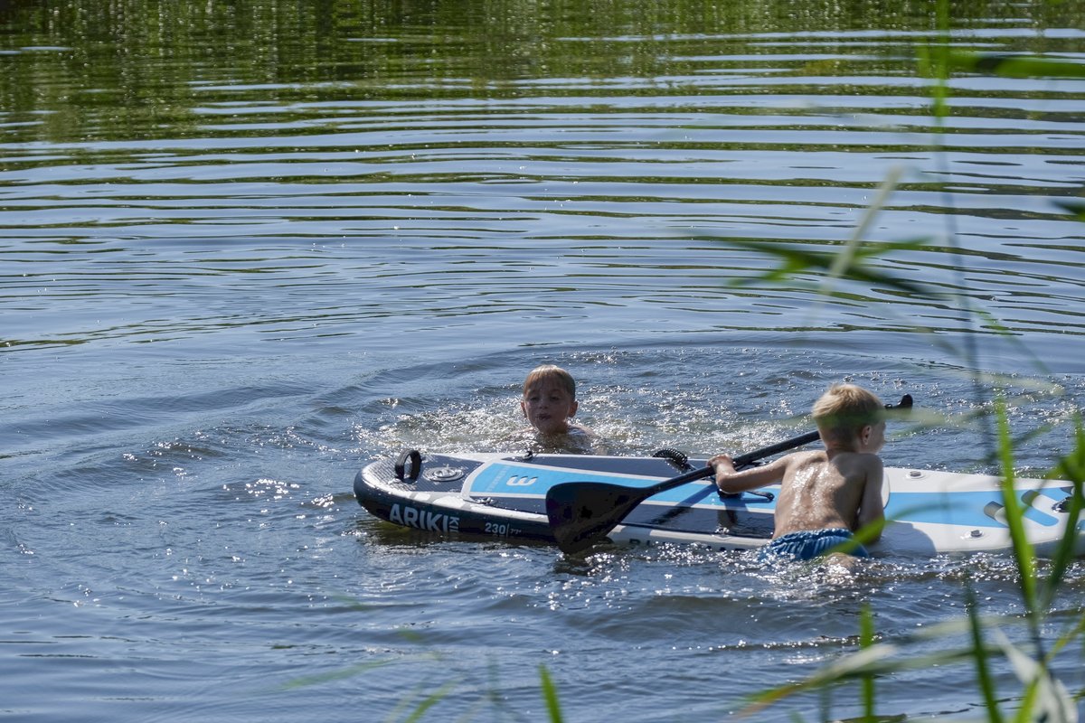 Wer es aktiver mag, wechselt die Perspektive. Das Stand-Up-Paddle, kurz: SUP genannt, hat auf dem Simmernhof längst Einzug gehalten. Es hat schon was Hochherrschaftliches, stehend auf dem Board an den Schilfgürteln vorbeizugleiten und die Natur aus einem Winkel zu betrachten, der jedem Fußgänger an Land verwehrt bleibt. Und SUPen kann einfach jeder!