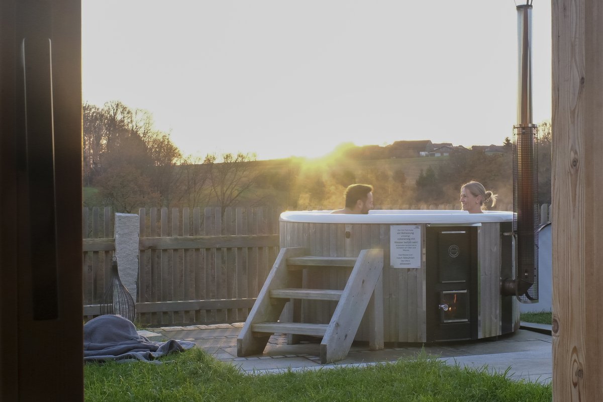 Der wahre Luxus wartet auf der Terrasse: ein privater Hot Tub. Das Wasser dampft in der kühlen Abendluft. Man lässt sich hineingleiten. Das warme Wasser umschließt den Körper. Der Blick wandert nach oben. Keine Straßenlaternen stören. Nur der Sternenhimmel funkelt hoch über dem Bayerischen Wald. Wer Gefallen an der privaten Wellness gefunden hat, der geht in die eigene Sauna. Ganz für sich allein. Keine Öffnungszeiten. Kein Gedränge. Nach dem Aufguss geht es barfuß auf die Holzplanken der Terrasse. Der Kontrast von Hitze und kühler Waldluft belebt die Geister. Es ist Wellness in ihrer privatesten Form. Hinter diesem Konzept stehen Christoph und Carina Auer. Sie führen den Hof mit einer Mischung aus Tradition und modernem Weitblick. Sie sind präsent, aber nie aufdringlich. Ein kurzer Plausch am Morgen, ein Tipp für die Wanderung am Mittag. Es geht um Ehrlichkeit. Echte Materialien. Authentische Erlebnisse.