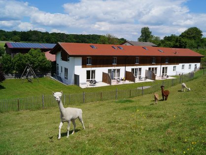 Derweil erreichen Urlauber alle möglichen Ausflugsziele mit dem öffentlichen Nahverkehr, mit den E-Bikes, für die Familie Ostermair kostenlose Ladepunkte am Hof eingerichtet hat, oder ganz klassisch zu Fuß. „Innerhalb von zehn Minuten erreicht man fußläufig den wunderschönen Weßlinger See, alle Einkaufsmöglichkeiten hier im Ort und die S-Bahnstation Weßling mit direktem Anschluss in die Münchner Innenstadt“, erzählen die Gastgeber. Dabei lässt es sich auch gut auf dem Bauernhof aushalten: Von Mai bis Oktober grasen Pensionsrinder auf den umliegenden Weiden und die Katze, Ziegen, Alpakas und Hühner freuen sich jederzeit über Gesellschaft.
